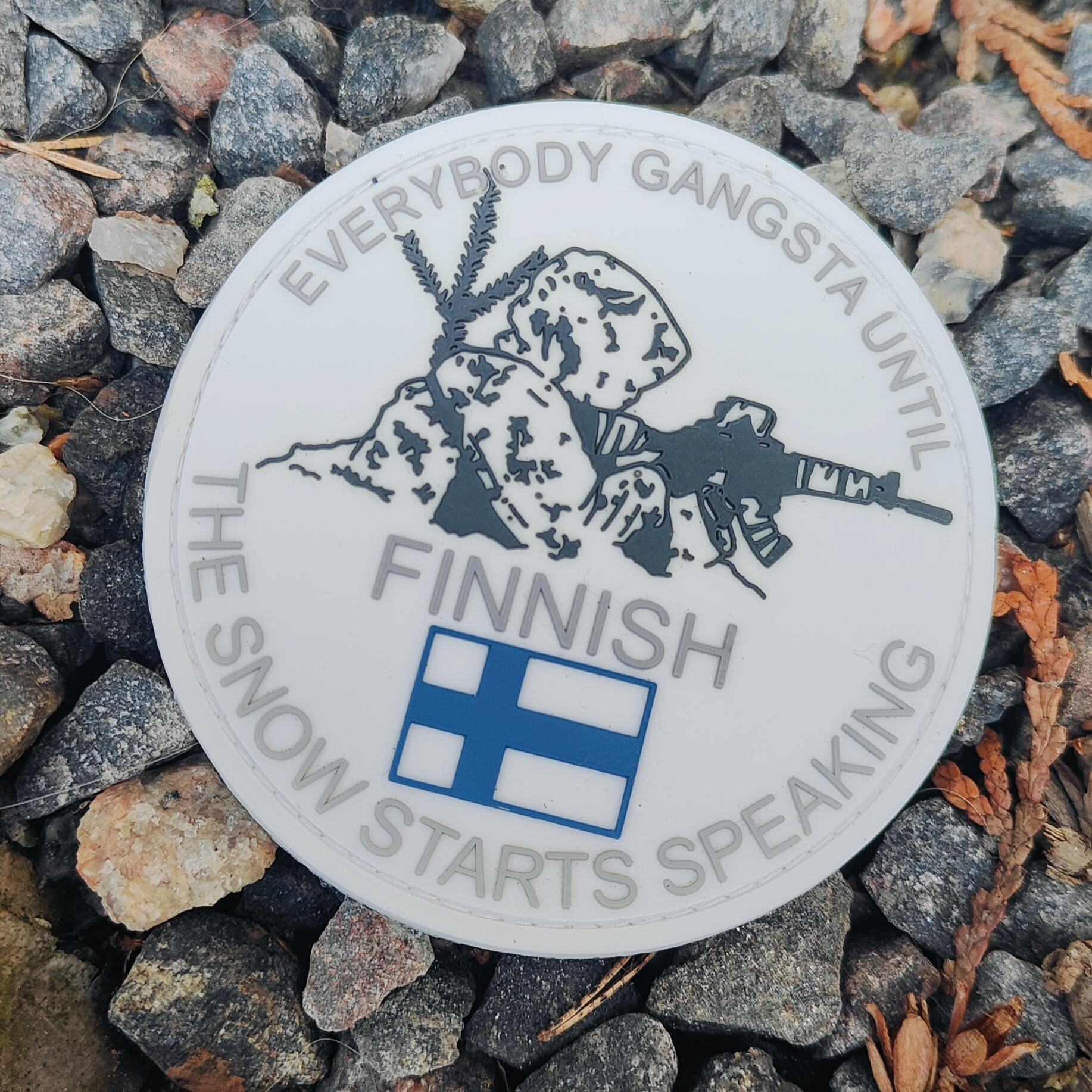 Meillä osataan ja meillä osataan myös olla ylpeitä osaamisesta. Joskus. Tämä merkki on toki kieli poskella suunniteltu, mutta siinä kiteytyy tunnetun 'everybody gangsta' -meemin avulla suomalaisten halu ja kyky puolustaa Suomen alueellista ja aatteellista koskemattomuutta.